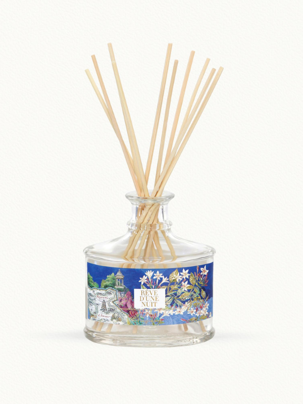 Dernier né de nos créations parfumées pour la maison, le diffuseur d’intérieur Rêve d’une Nuit met en flacon l’impression de la tombée du jour sur un jardin méditerranéen. Au fil des heures se diffusent dans la pièce les effluves suaves du jasmin conjugués aux douces notes capiteuses de l’ambre et du bois de cèdre. Objet de décoration et d’un plaisir sensoriel renouvelé, ce diffuseur s’accompagne de ses bâtonnets de rotin.