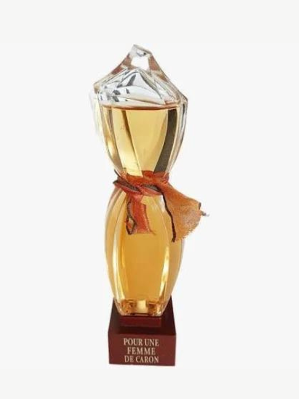 Avec Pour Une Femme, Caron a donné naissance à une nouvelle histoire d’amour entre les hommes et un parfum de femme. Pour Une Femme, sur un lit de roses, enveloppé du mystère des larmes d’oliban, est une invitation à la sensualité. Sculpture de Serge Mansau, ce flacon exprime toute la complexité de la femme en alliant la force des droites à la douceur des courbes.